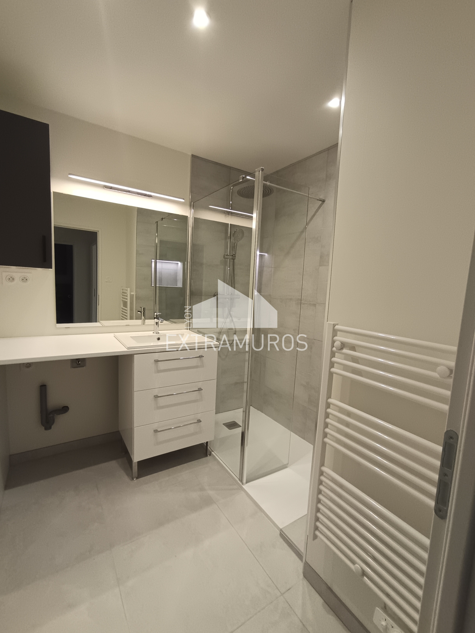 Une belle pièce de vie d'environ 27m² avec cuisine ouverte et meublée (partiellement équipée : plaque à induction et hotte) et un cellier attenant. Le coin nuit propose 2 belles chambres de plus de 11m² chacune avec placard intégré et équipé, une salle d'eau avec meuble vasque et sèche serviette et un toilette séparé.