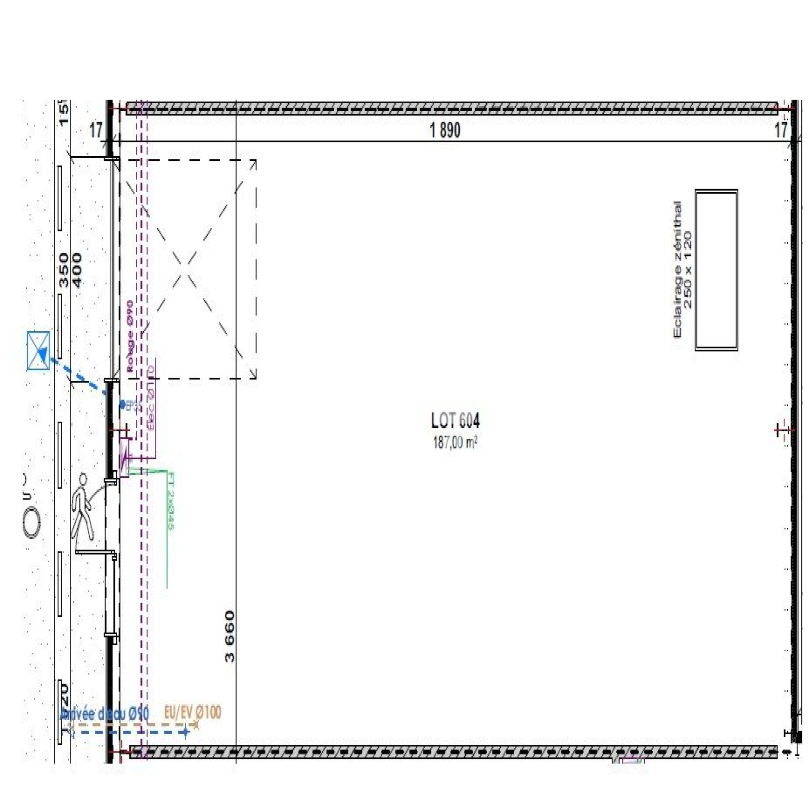 Dernières surfaces utiles disponibles : à partir de 150 m² au sol, plus une mezzanine de 75 m², jusqu'à 189 m² au sol avec mezzanine de 92 m². Possibilité d'associer des lots. En option, escalier métallique à 5800 € HT. Garde-corps à 250 € HT / ml