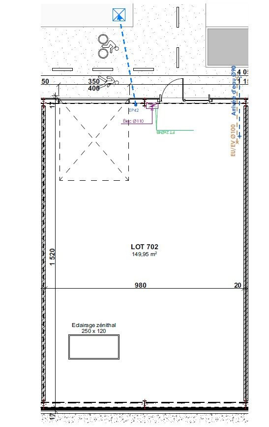 Bénéficiez de prestations haut de gamme : Hauteur libre de 6,3 m minimum, bardage double peau avec protection isolante, grandes baies vitrées, skydomes de grande surface pour une luminosité naturelle, portes sectionnelles motorisées 3,5 m, 2 stationnements inclus. Livraison brut de béton, compteur électrique avec consuel.