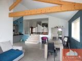 Vous découvrirez de plain-pied un vaste hall d'entrée dominant la partie vie entièrement déplafonnée, un salon de 33m² et une cuisine ouverte équipée de 11m² donnant sur une terrasse abritée d'environ 35m².