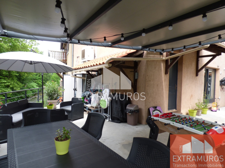 VENDU - Exclusivité Sain-Bel. Très proche du centre. Beaucoup de charme et parfait état pour cette maison de village d'environ 91m² habitables et sa terrasse de 70m² surplombant la rivière.