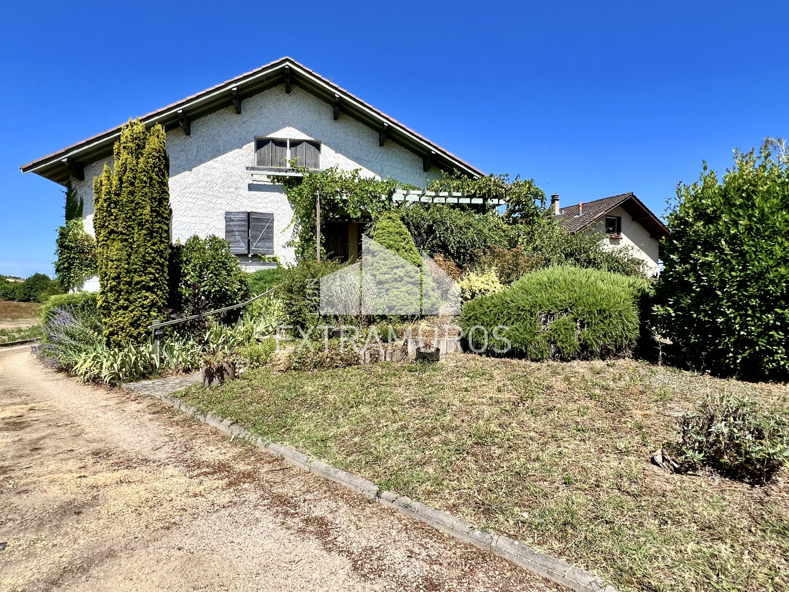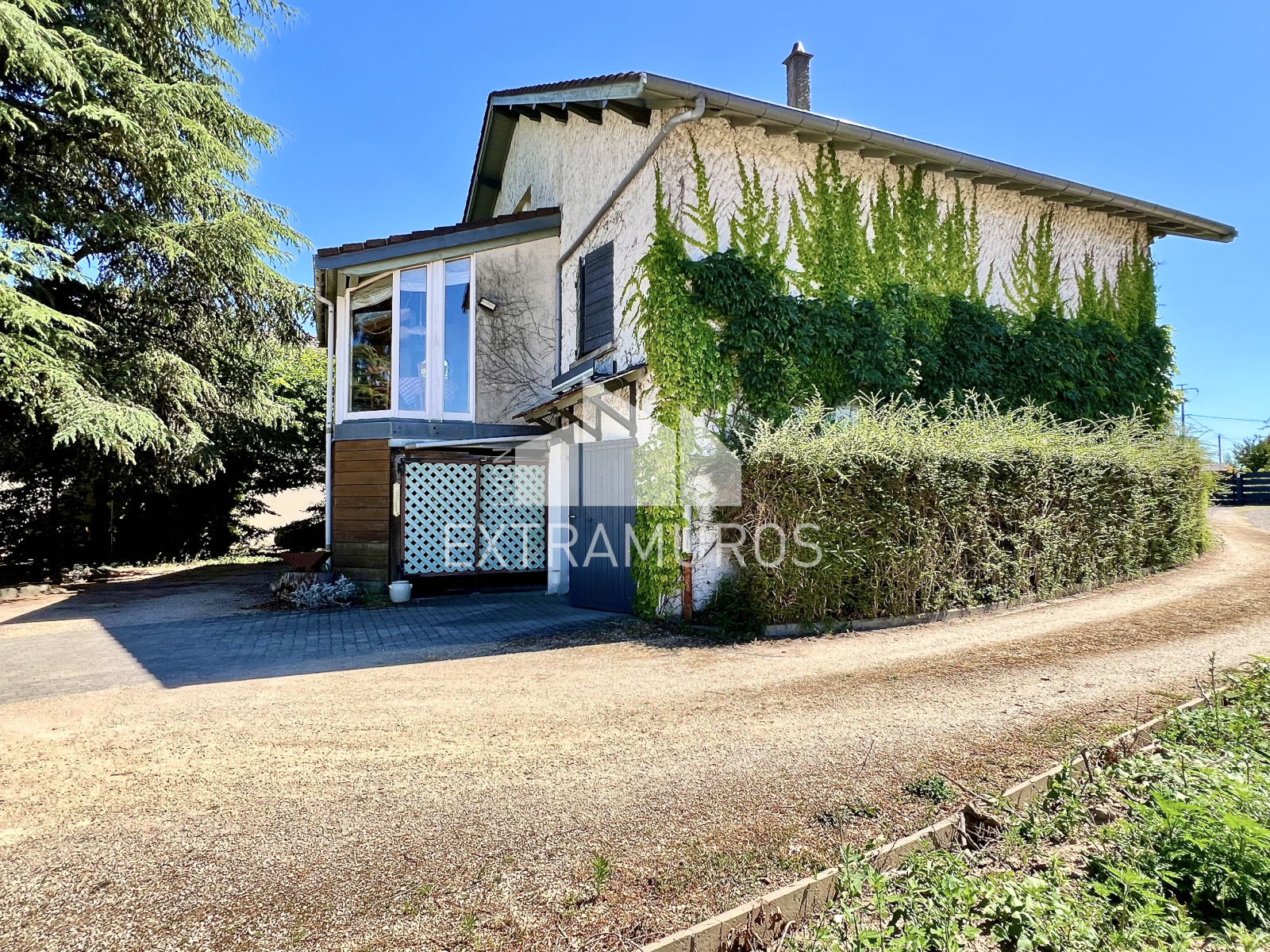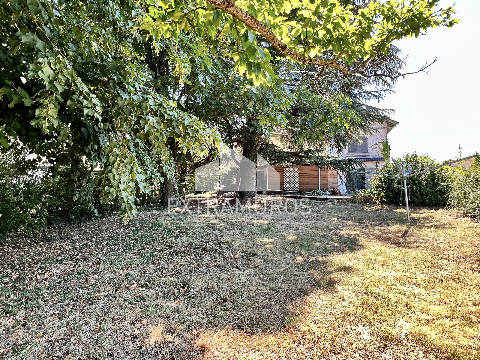 Le terrain arboré se répartit sur l’avant et l’arrière de la maison, offrant de beaux espaces extérieurs.
