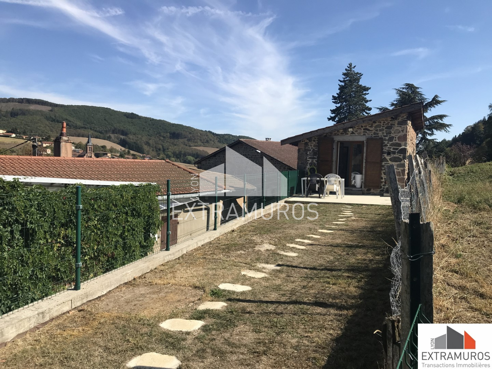Maison en pierres de 90 m² habitables au calme dans une impasse, avec une vue dégagée.